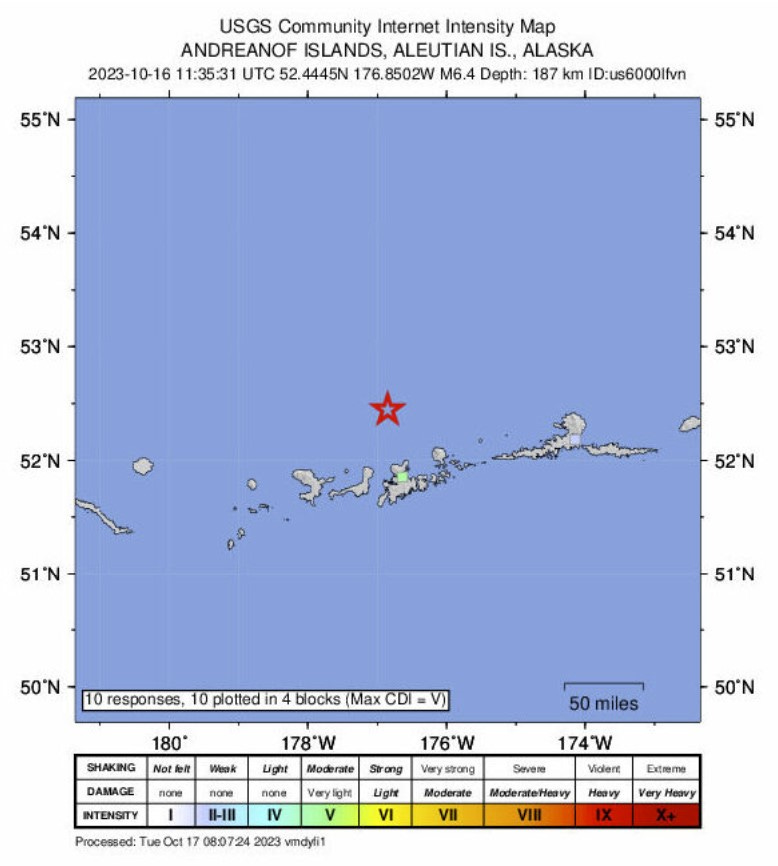 Very deep M6.4 earthquake hits off Adak Island, Alaska…
