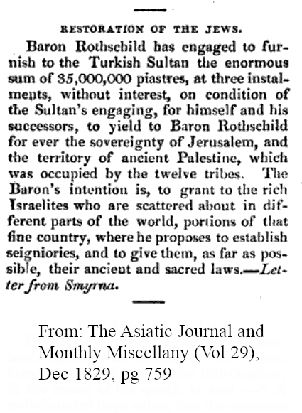 When Rothschilds tried to buy Palestine (1829)…