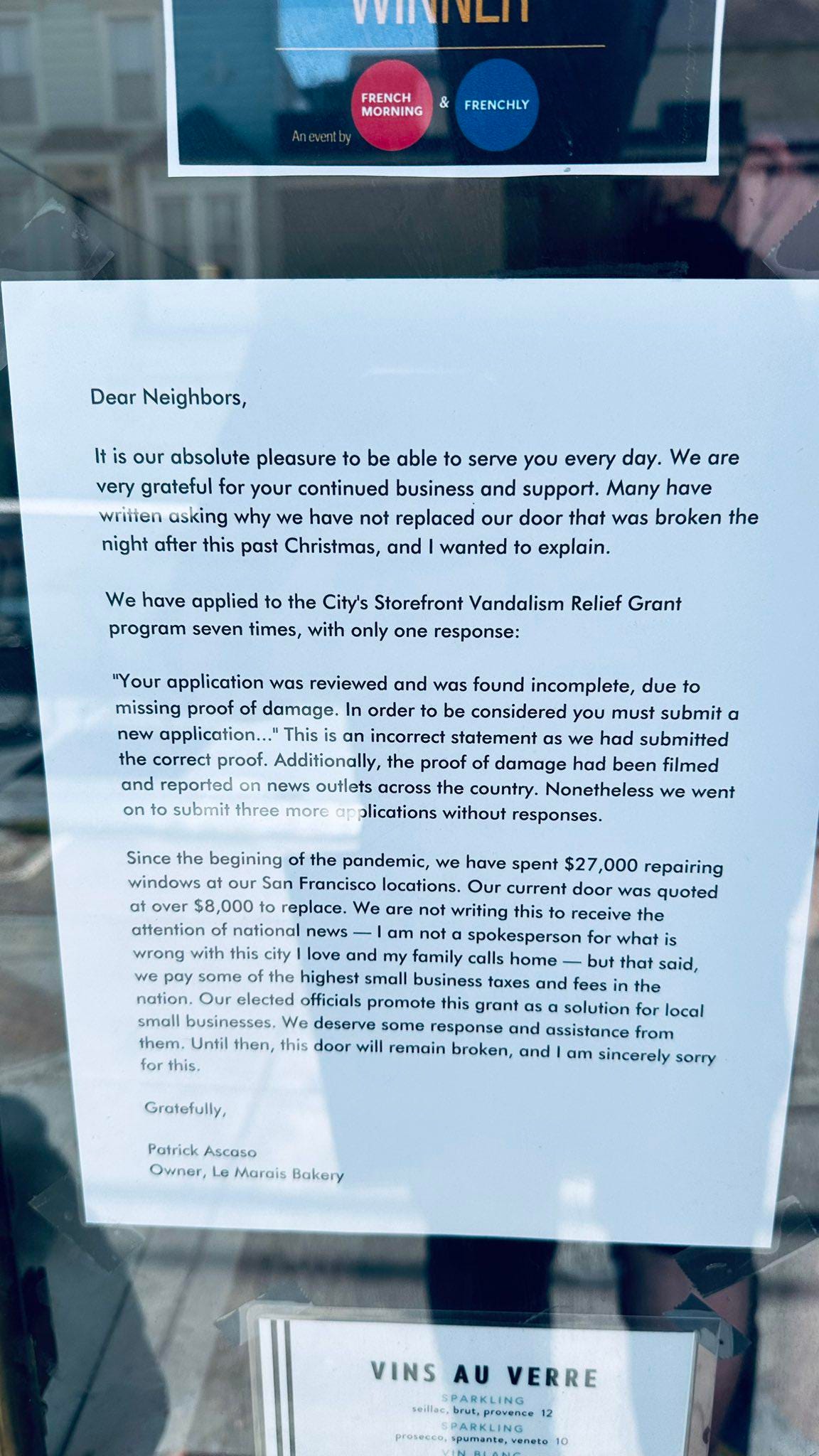 Sign outside a bakery in San Francisco…