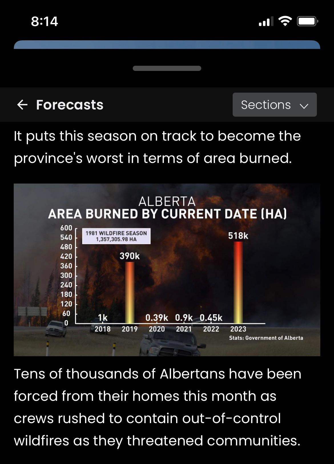 Hectares burned in Alberta to current date of year (May 14)…