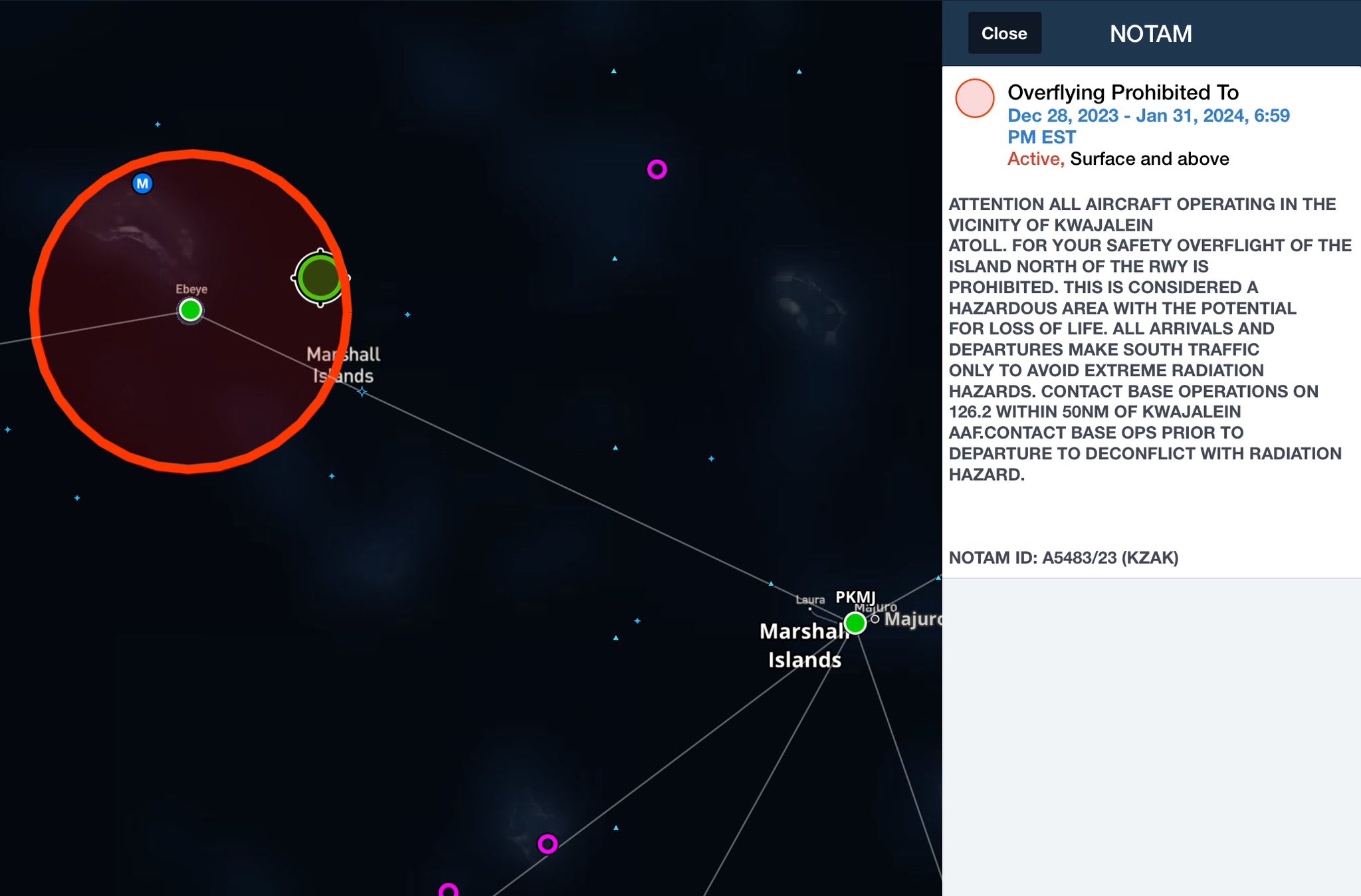 Radiation hazard at Kwajalein Atoll triggers NOTAM (Notice to Airmen)…