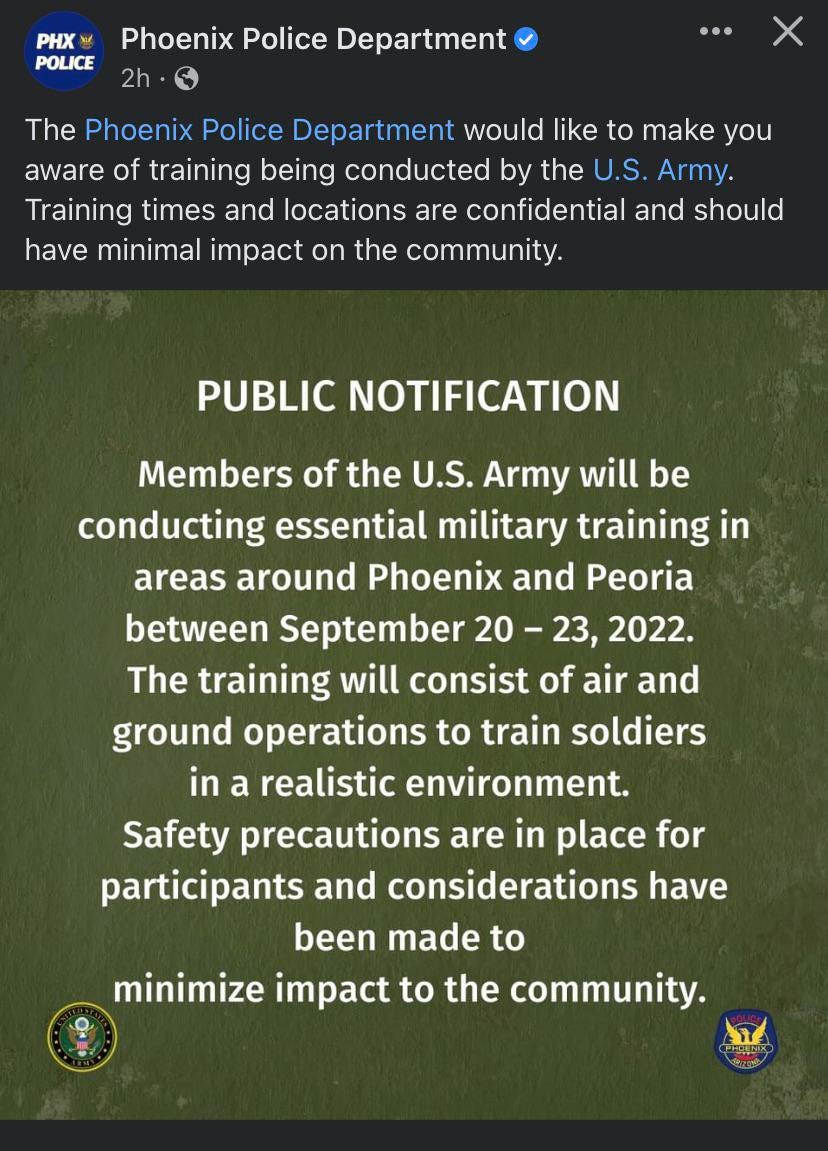 US Army Training - Sept 20-23 Phoenix, AZ… Kind of weird on the timing no? Can we say things are getting fishy?