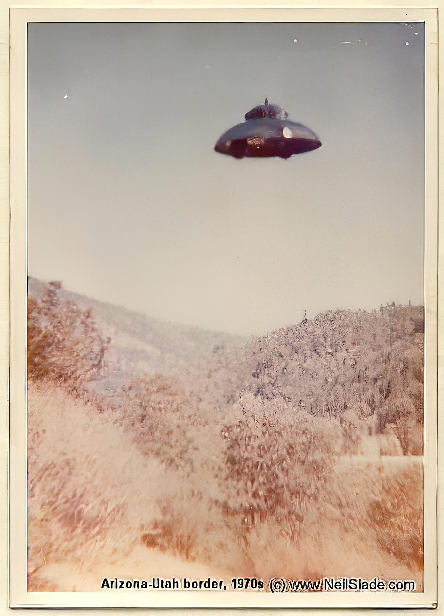 It is intresting how the aliens design their craft in current era earth styles. ;)… Arizona-Utah border disc shaped object captured in the 1970s…