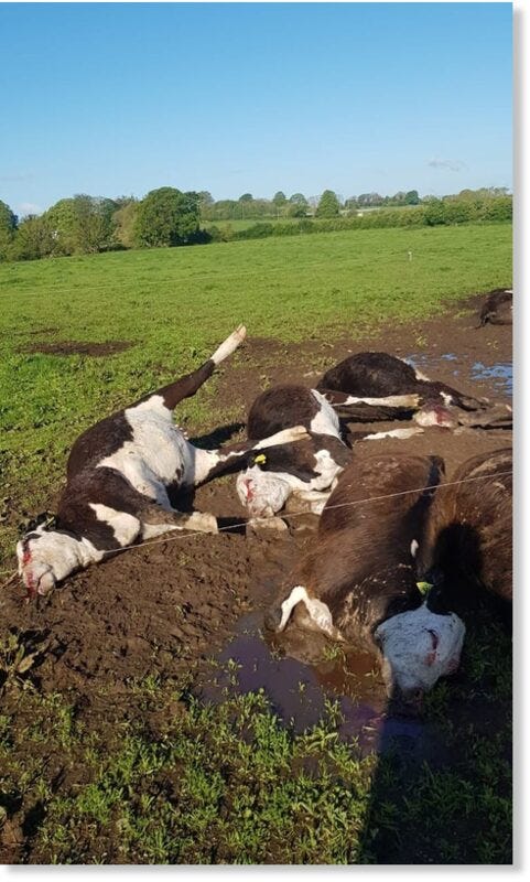 Eight calves, bleeding from their eyes, killed by lightning in Ireland…