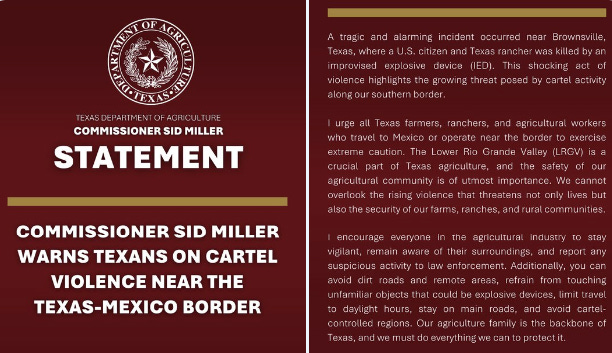 A tragic and alarming incident occurred near Brownsville, Texas, where a U.S. citizen and Texas rancher was killed by an improvised explosive device (IED)…
