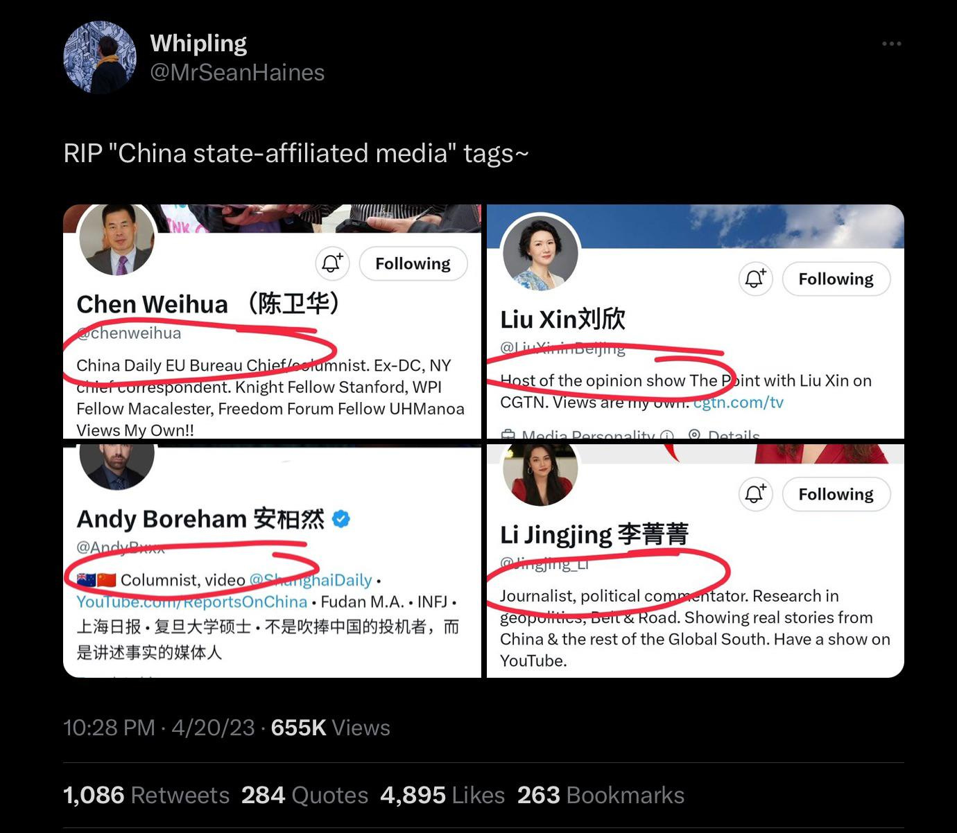 He then used the backlash from these organizations to remove all state-affiliated tags thus removing the Chinese ones in the process…