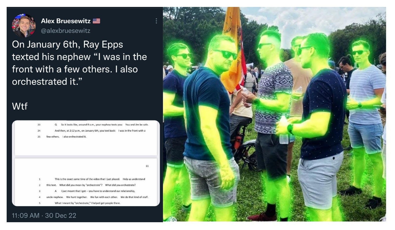 Ray Epps confirms text under oath "I orchestrated it." So we got Ray Epps who was screaming "we need to go INTO the Capitol" and rounding up a bunch of people and telling them to smash signs into Capitol Police. And he's a free man. January 6 is a big giant crock of steaming shit orchestrated by CIA…