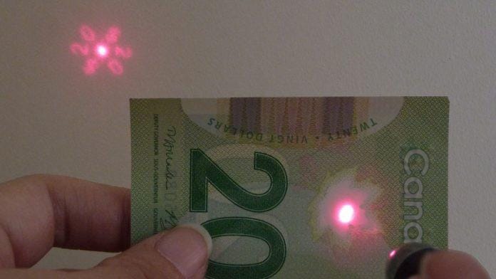 If you shine a laser through a Canadian banknote’s maple leaf, you will see the note’s denomination appear on the wall: