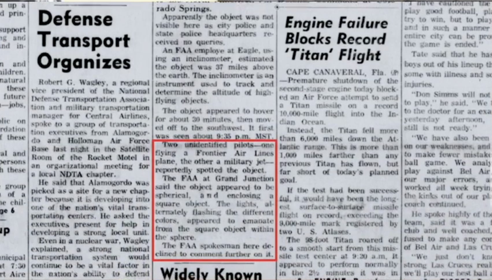 Screenshots from a newspaper article Corbell showed to Rogan from Alamogordo New Mexico September 29, 1960 - describing a 𝗖𝘂𝗯𝗲 𝗘𝗻𝗰𝗹𝗼𝘀𝗲𝗱 𝗶𝗻 𝗮 𝗦𝗽𝗵𝗲𝗿𝗲 UFO. Same UFO pilots describe today was seen 62 years ago, which proves it can't be ours, Russian or Chinese…