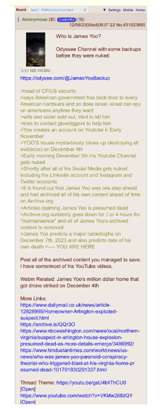 Who is James Yoo? Very strange happenings. His house blew in a big way. What is the story here? A nutter; or did he find out something?