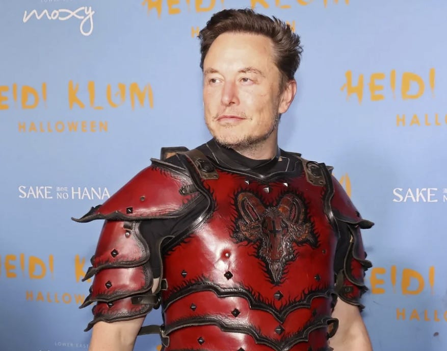 So are there some people here genuinely still believing the guy that wore this costume 2 years ago (which was called "Devil's Champion") is their ally and trust him? Sorry but LOL! Musk is no one's ally and no one should trust or support him…