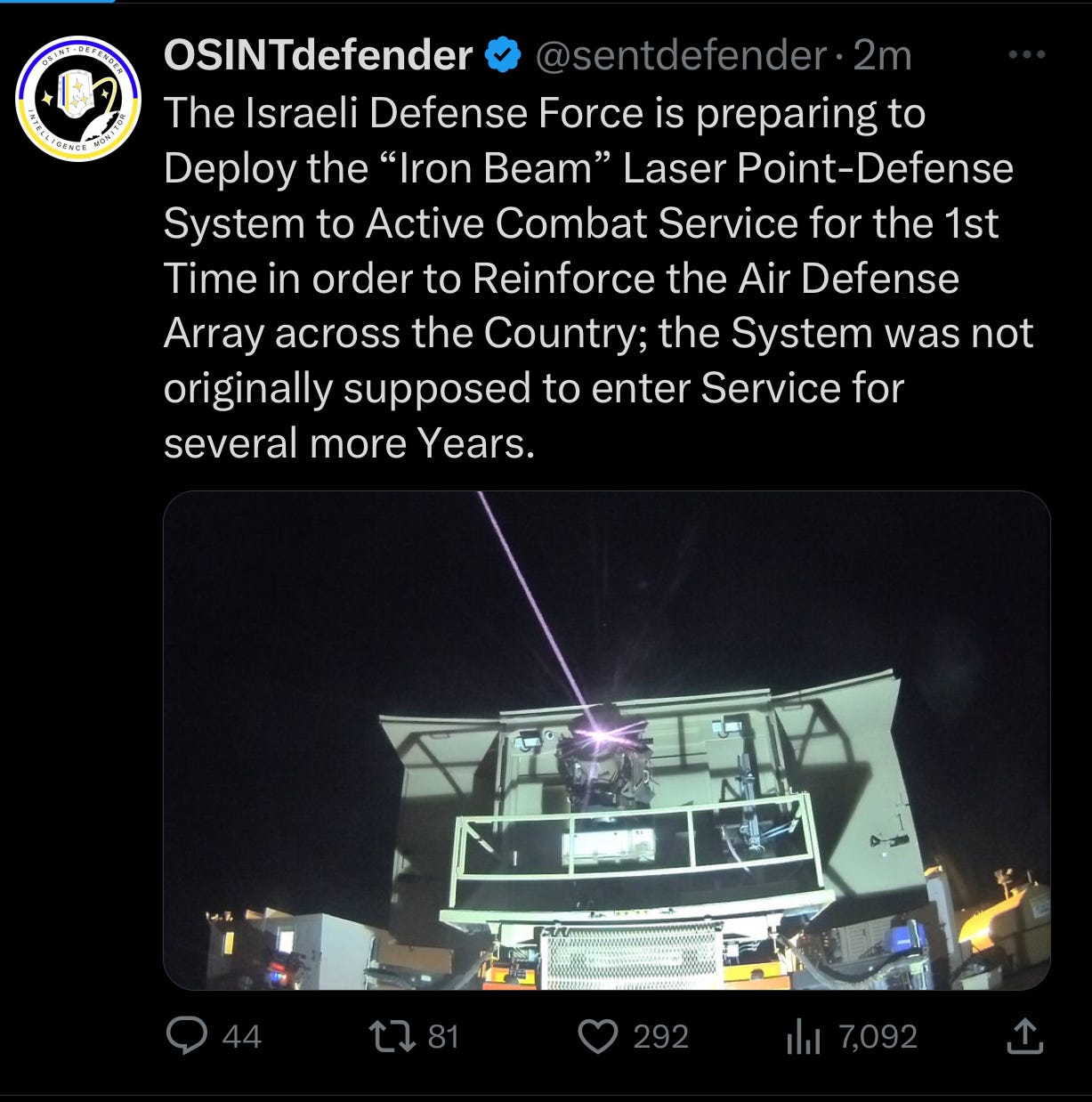 Iron Bean - Israel Laser Weapon - Is this the first confirmed use?