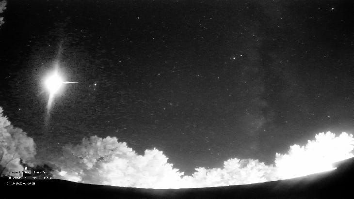 3 meteor showers in one night: Be alert for fireballs tonight, July 30th. Earth is passing through debris streams from three comets: 169P/NEAT, 96P/Machholz, and 109P/Swift-Tuttle. Respectively, these produce the alpha Capricornid, southern delta Aquariid, and Perseid meteor showers. (Earth is only in the outskirts of the Perseid stream.) Together, the three showers will combine for as many as 20 meteors per hour with a sprinkling of bright fireballs after local midnight.