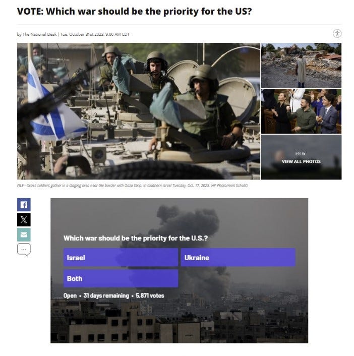 Poll on local news site: Which war should be the priority for the US? Funny enough, ‘None’ is not an option...
