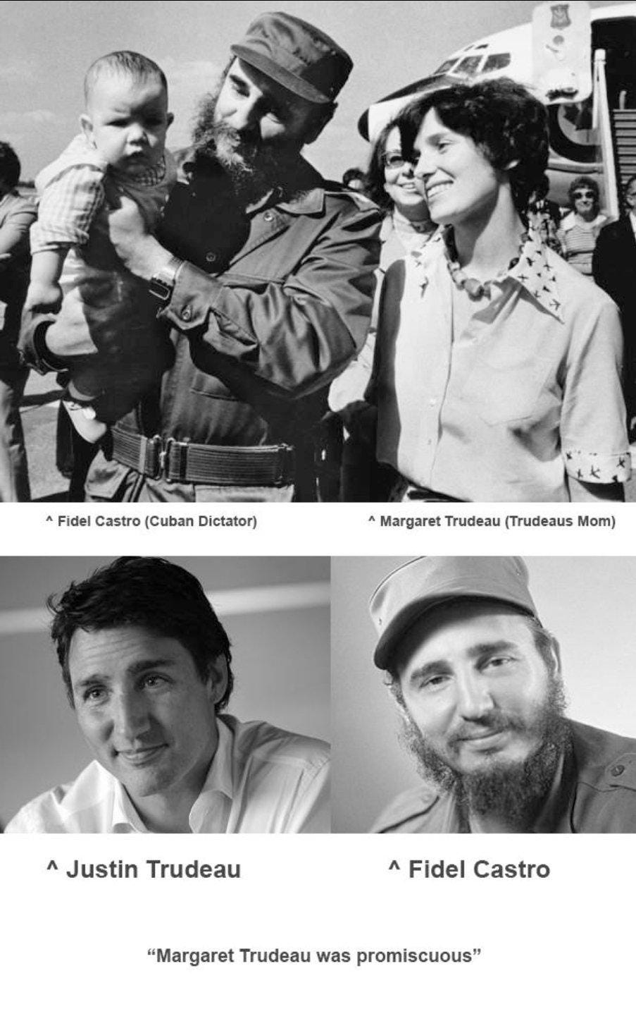 When it comes to the idea that Justin's father may have been Fidel Castro it's simple to figure out. Justin was born Dec 25 1971. Go back 9 months to conception. At that time the Trudeau's were on their second honeymoon in the Caribbean. They visited 5 Island nations ; 4 were disclosed and one was undisclosed. So Justin looks like Fidel and acts like him and more importantly his mother was in the vicinity of cuba. Connect the dots. By coincidence i lived next door to Margaret's sister. At Halloween and Christmas Pierre and family minus Margaret would show up for fireworks at Halloween ( it's a big deal in Vancouver) and being neighbors with two young kids we were invited over to enjoy the fireworks. I remember one Xmas being outside cutting some wood for the fireplace. Was smoking a joint when secret service came with Pierre and family. He just smiled. It's ironic that Pierre Elliot Trudeau published the LeDain Commission recommending the decriminalization of Cannabis in late 1972 -73 Haven't told many people this story. It happened between 1988-90.