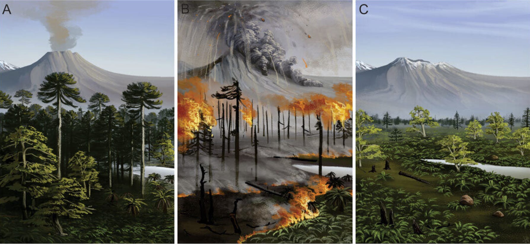 Volcanic eruption, fires, and lots of green… Frequent fires struck Antarctica during the age of dinosaurs, 75 million years ago…