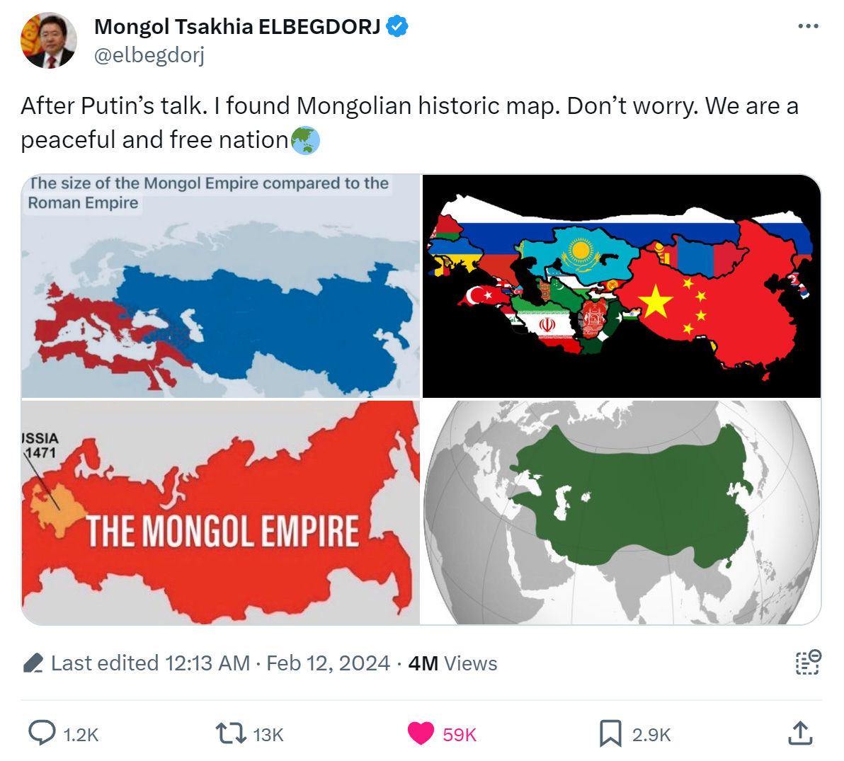 Former President of Mongolia just tweeted this today…