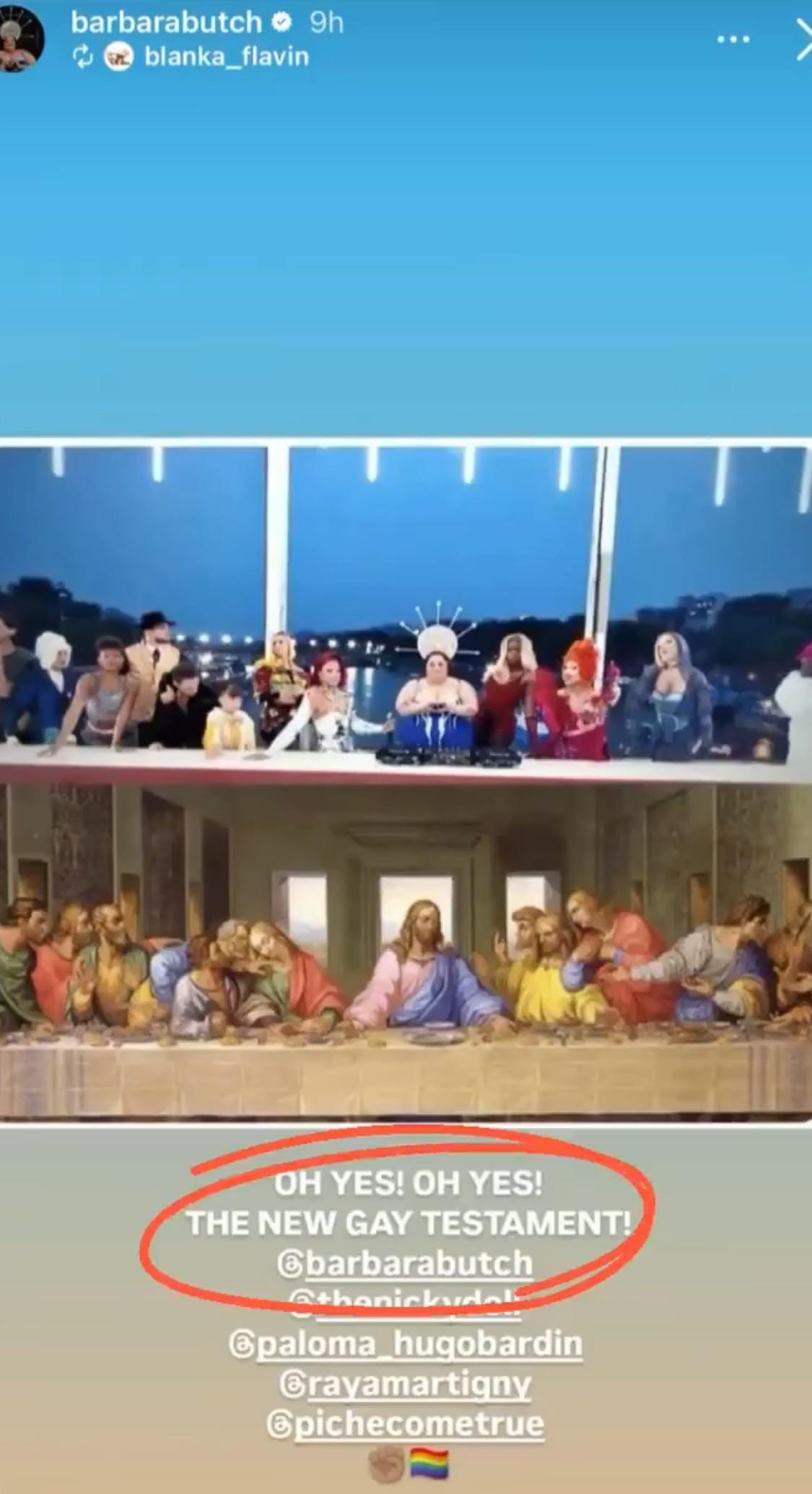 Screenshot from Barbara Butch’s Instagram admitting resemblance to Last Supper…