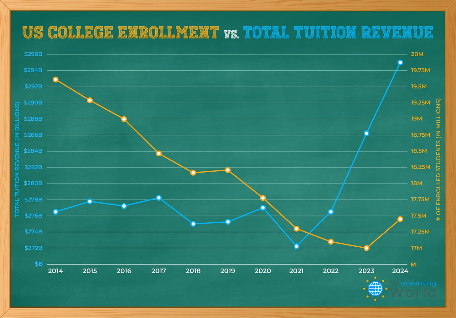 College enrollment has steadily been declining as many would-be students are being priced out of going, but meanwhile, colleges are still making more money than ever before thanks to jacking up their prices every year to more than cover the loss of students. This doesn't seem like a sustainable model for higher education…