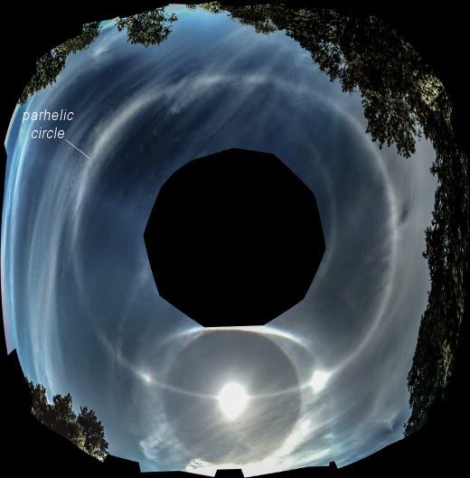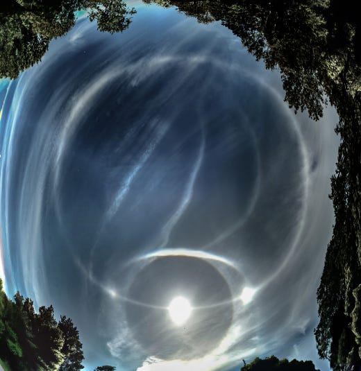 ARTIFICIAL INTELLIGENCE CAN CREATE CLOUDS: On May 28th, an unusual weather system blanketed the UK, producing a stunning variety of ice halos widely seen... By combining 11 photos, R. J. Cobain of Conlig, Northern Ireland, was able to capture a full parhelic circle.