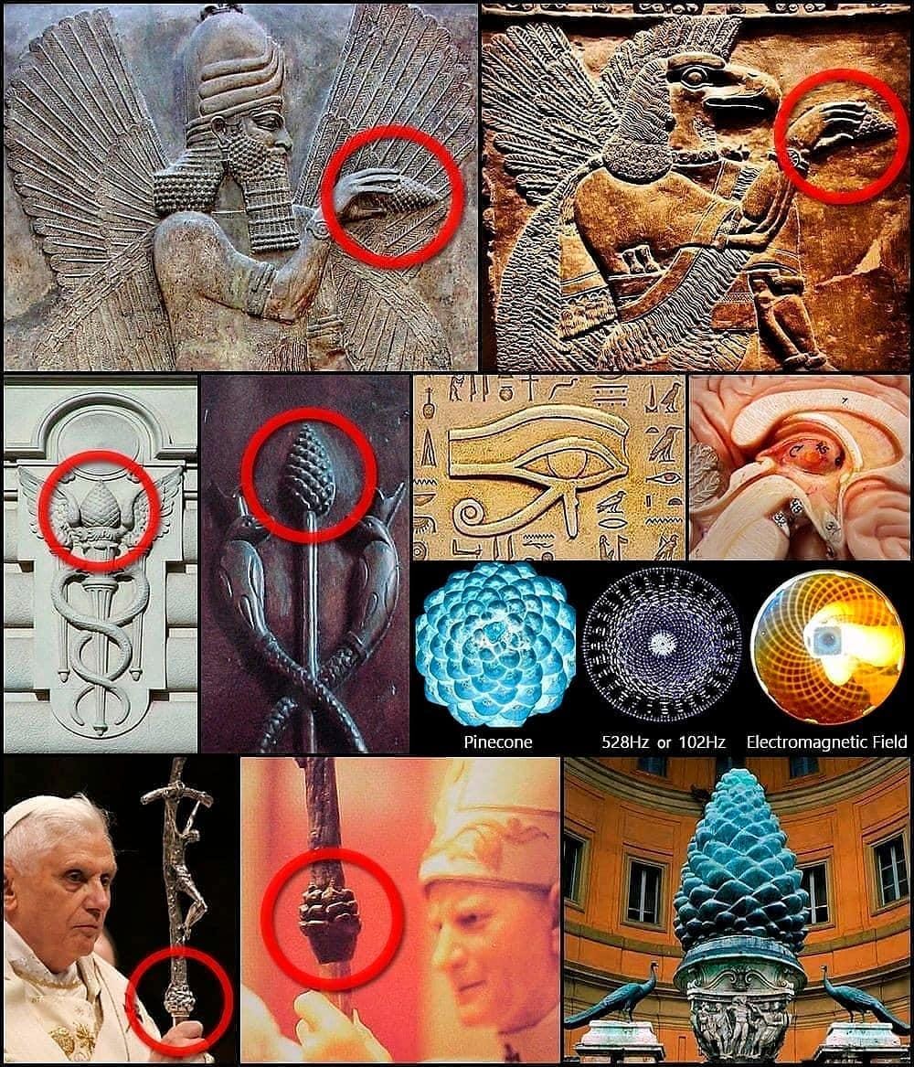 Pineal? The pinecone symbolism depicted by ancient civilizations across the globe represents the pineal gland, often referred to as the “third eye.”
