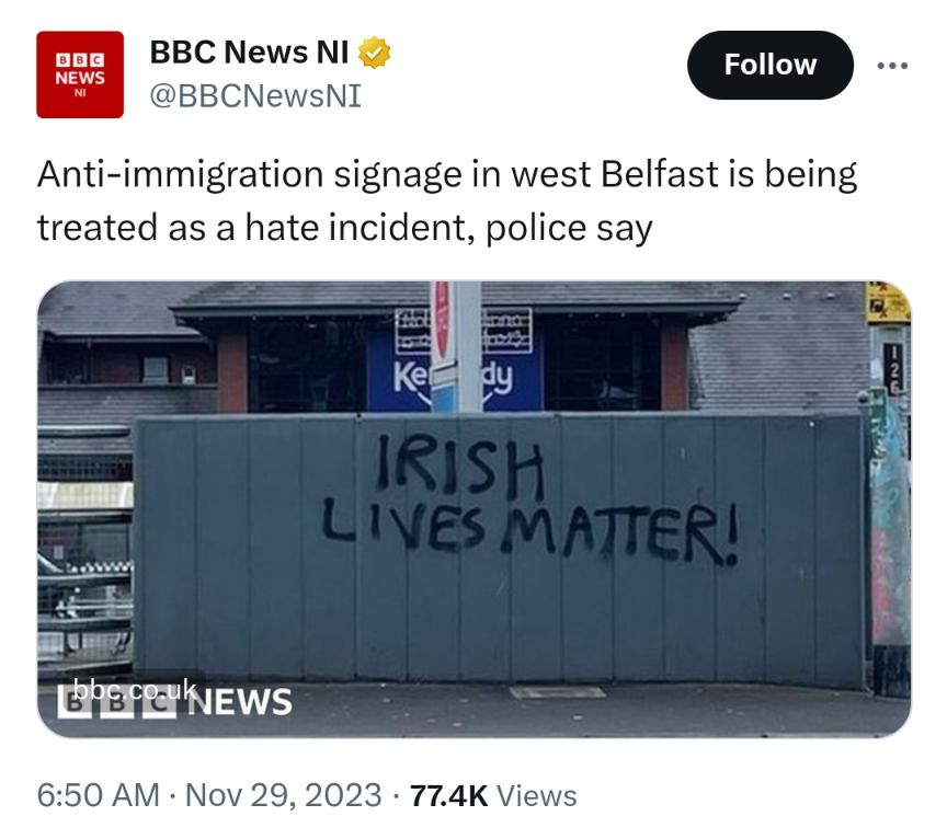 Saying "Irish Lives Matter" in Ireland is now considered a hate crime…