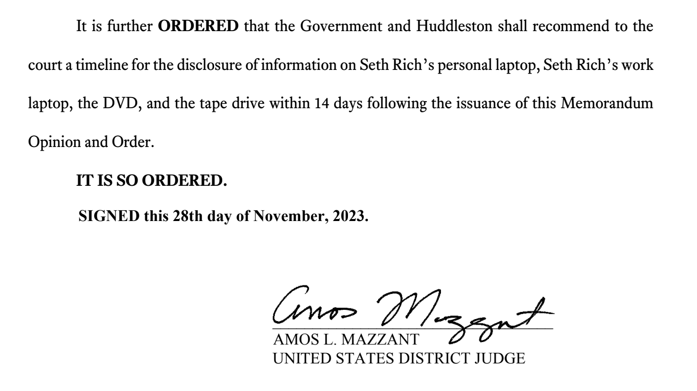 Soooo it'll be "accidentally" deleted/lost in a fire/missing? If it isn't already... Yep, I'm sure they'll be fully cooperational… FBI ordered to disclose information on Seth Rich's personal laptop, Seth Rich's work laptop, the DVD, and the tape drive within 14 days…