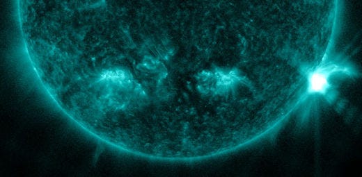This flare will almost certainly produce a CME, which will miss Earth because of the blast site's location on the western edge of the sun.