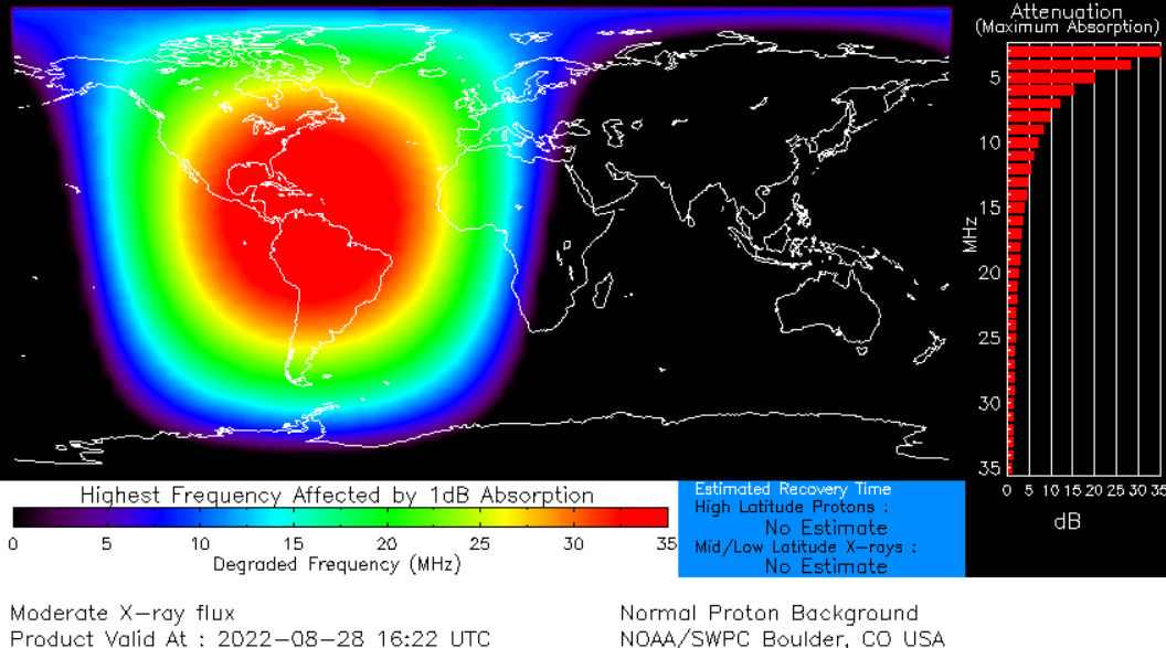 Radiation from the flare caused a shortwave radio blackout over the Americas: