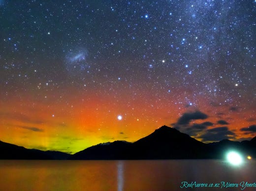 A co-rotating interaction region (CIR) hit Earth's magnetic field on May 27th. The impact sparked 12 hours of geomagnetic storming (G1-class) and a rare display of Southern Lights. Minoru Yoneto sends this deep-sky exposure from Queenstown, New Zealand: