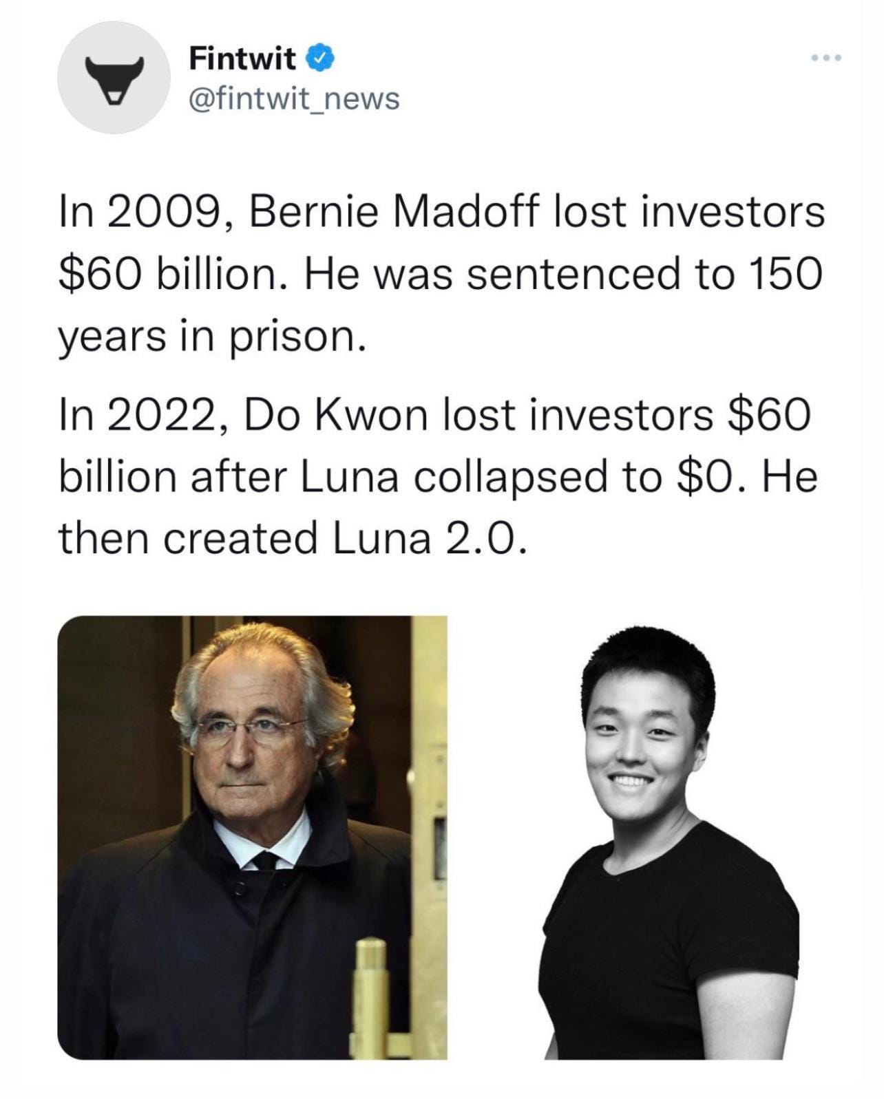 Crypto: Investors still recovered 80% of their money from Madoff, whereas Do Kwon got everyone rekt…