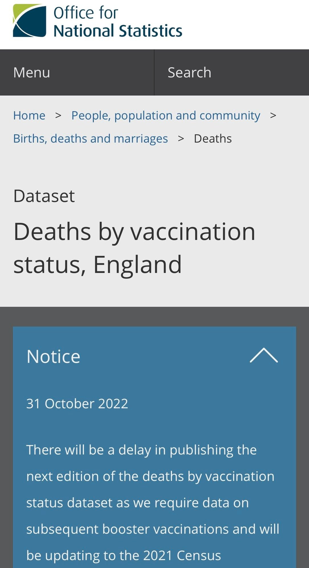 UK: There will be a delay in publishing the next edition of the deaths by vaccination status. Looks like its gonna be delayed until they work out how to present the astronomic numbers…
