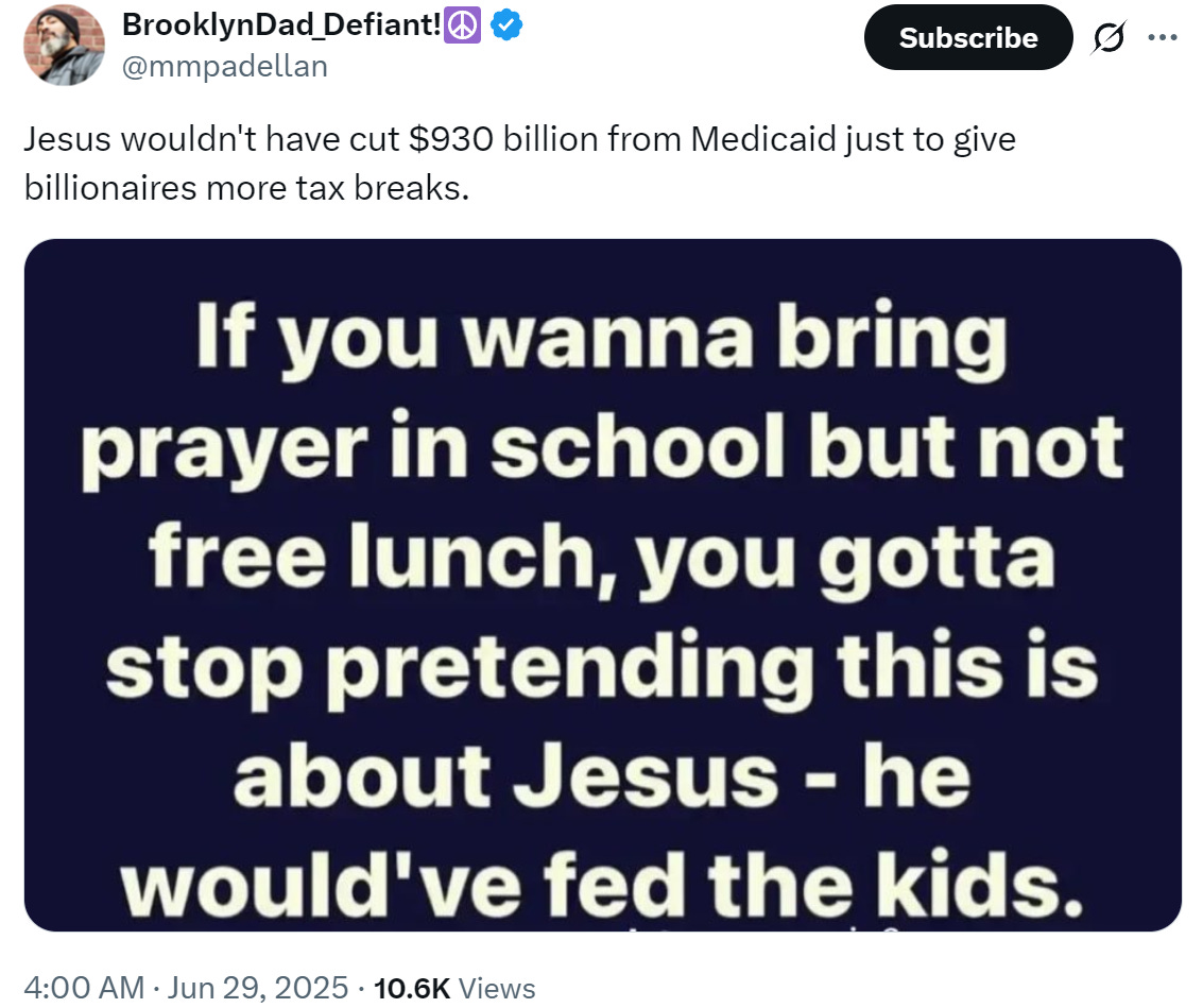 Anyway, Jesus wouldn't have cut $930 billion from Medicaid just to give billionaires more tax breaks…