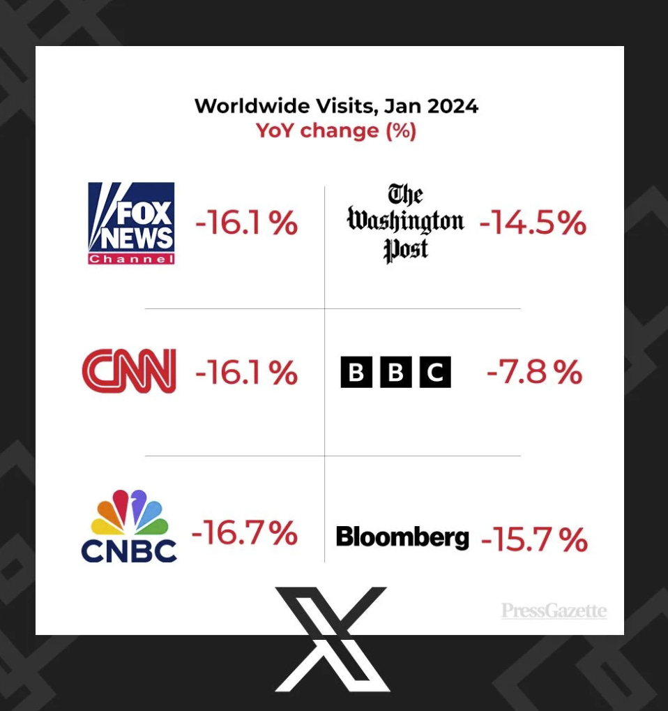 Media will never reports its own decline… I see the X but no numbers for X. Funny how that works…