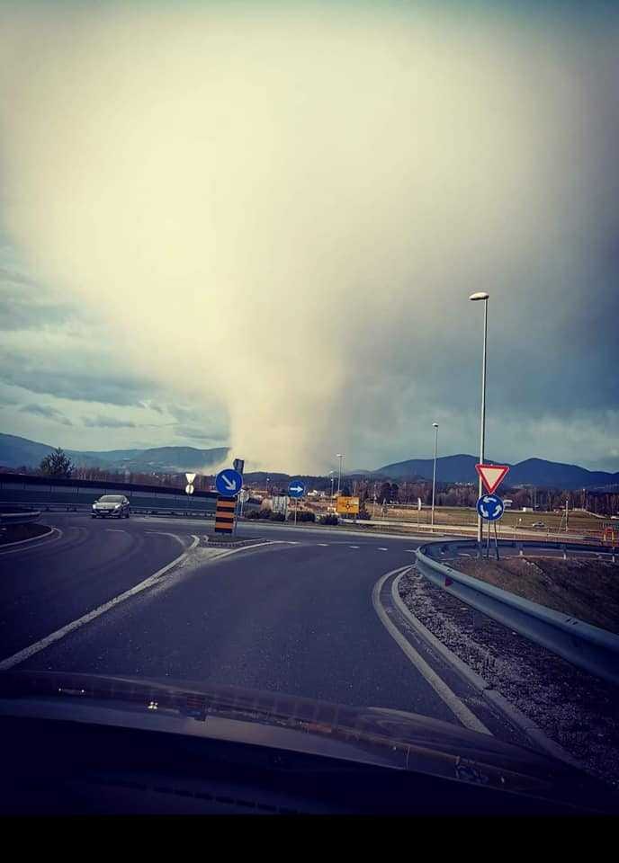 The snow in Slovenia looks like it might be a microburst or downburst. I experienced one here (Wishkah Valley near Aberdeen WA USA) recently (without snow, but with some large hail) and the winds were ferocious! Though brief. (Microbursts are infamous for crashing jets at landing or takeoff.)