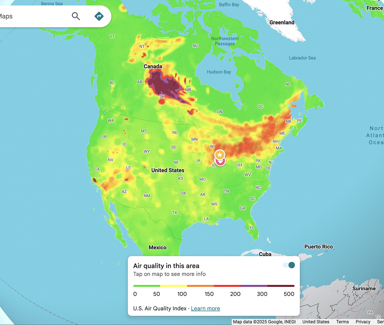 Much of Canada and the midwestern US is covered in a cloud of wildfire smoke…