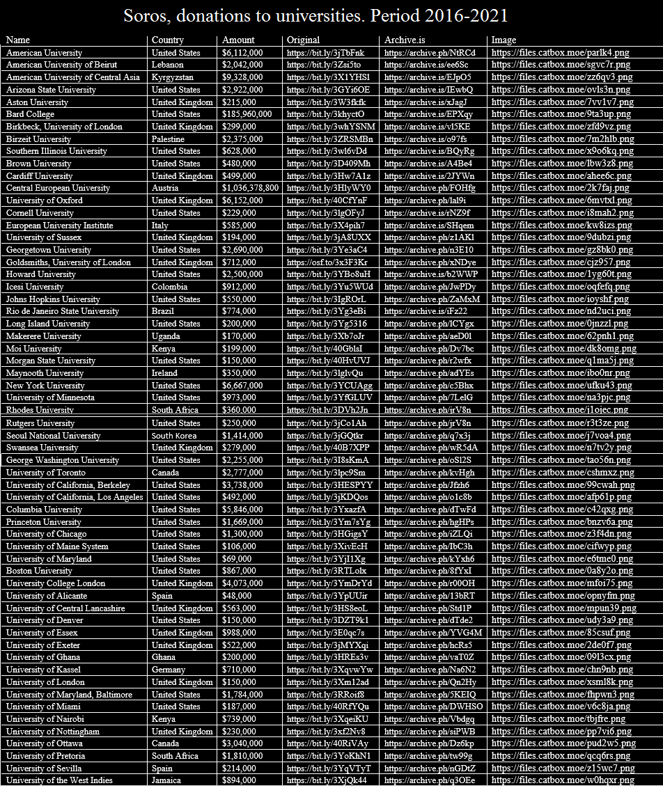 Nobody controls what students are learning… Of course not… Soros donations to universities, total: $1.2B…