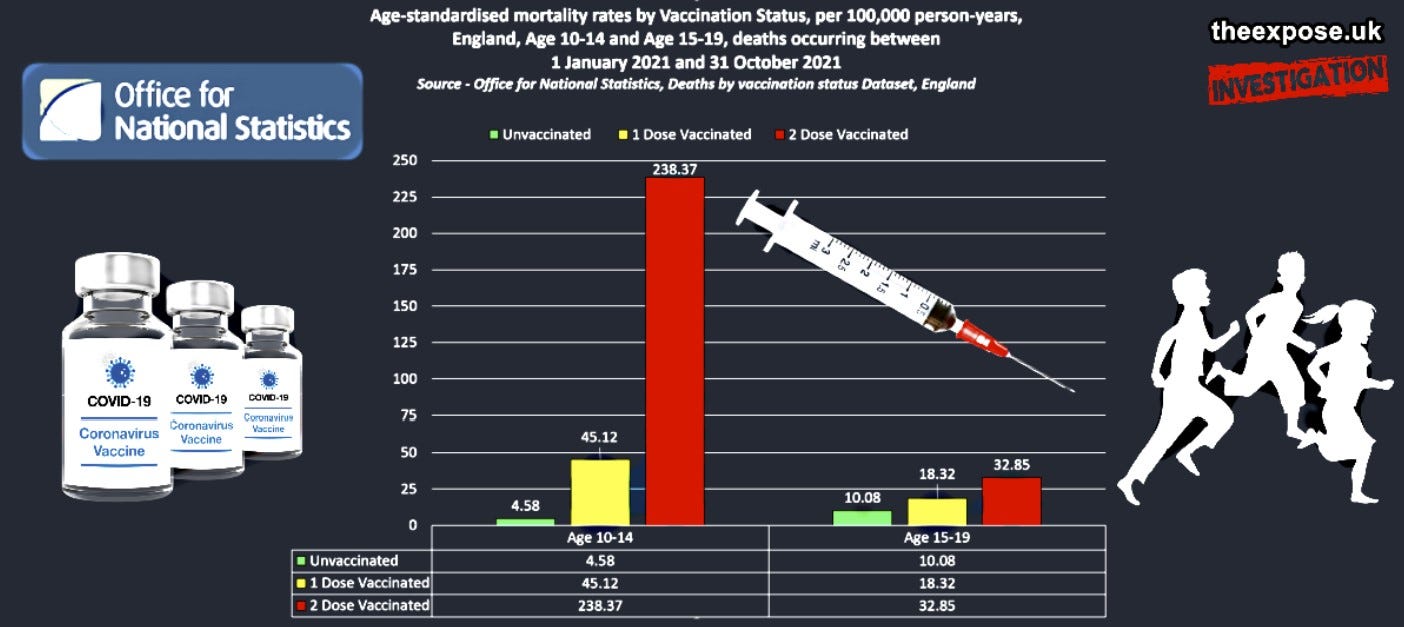 The Office for National Statistics has revealed without realising it that children are up to 52 times more likely to die following Covid-19 vaccination than children who have not had the Covid-19 vaccine…