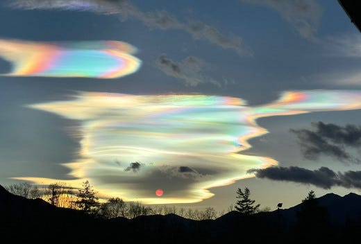 PSCs are normally confined to the Arctic where the stratosphere is coldest. During this week's extreme cold wave, the clouds descended all the way to mid-latitudes. Here they are over Locarno,Switzerland (+46N):
