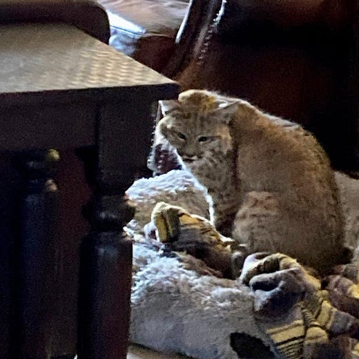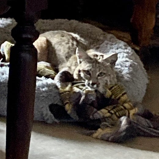Homeowner returns from work to find wild bobcat inside dog’s bed…
