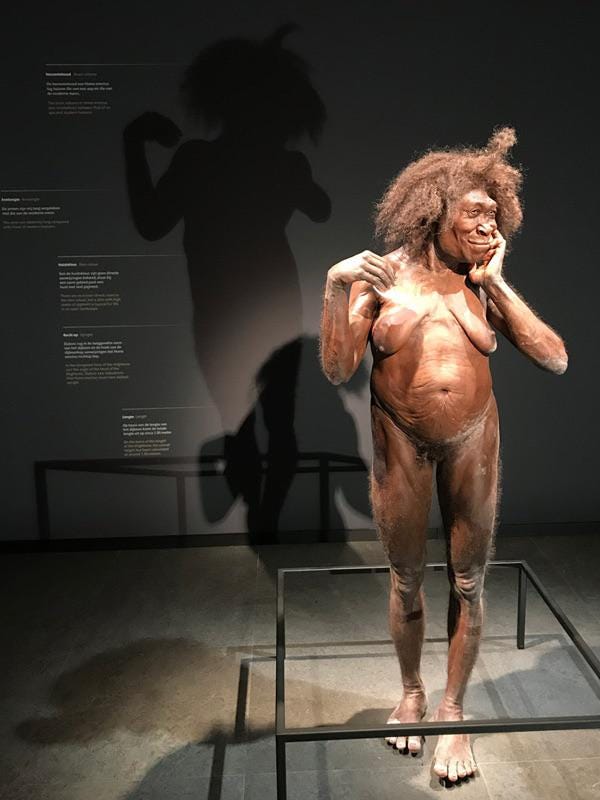 Recreation of a Homo Erectus female who lived c. 2 million years ago at a museum in Leiden, Netherlands…