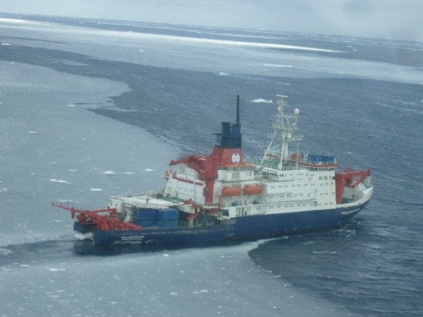 But let us come back to the topic… So, during my studies in geology, we (50 scientists and 50 crew members) sailed over two months on one of the most powerful research icebreakers, the SV Polarstern, to study, among other things, the movement of the Pine Island Bay Glaciers…