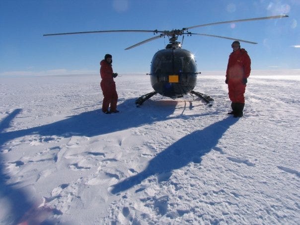 We were flying everyday with helicopters to the continent to install GPS stations and make magnetic/ seismic maps of the area (a very environmetally friendly trip… LOL!).