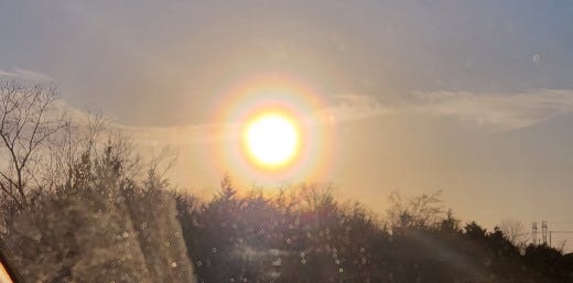 Residents of the US midwest have been experiencing strange weather this week. Winter isn't over, but it feels like spring. People are playing golf in shortsleeves, flowers are blooming, and pollen is in the air. Indeed, there's so much pollen it's making halos around the sun…