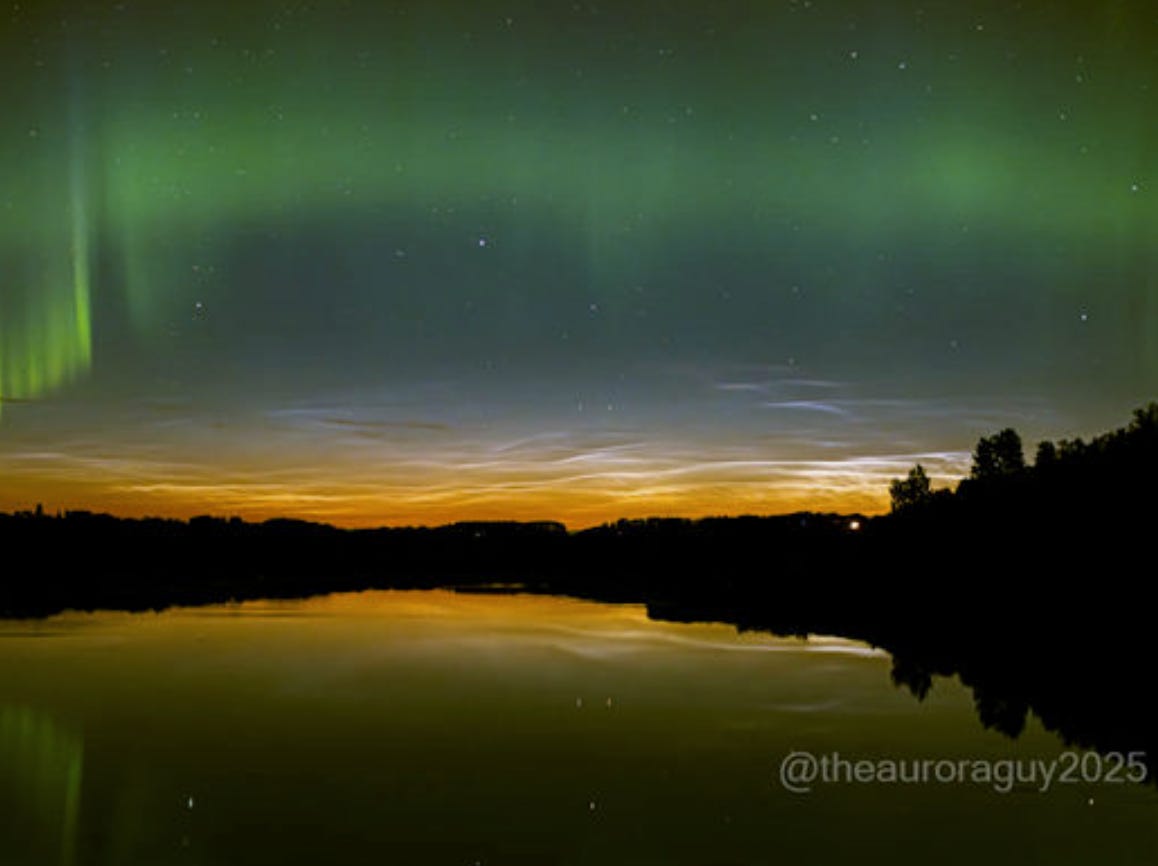 Aurora and noctilucent clouds over Alberta, Canada: