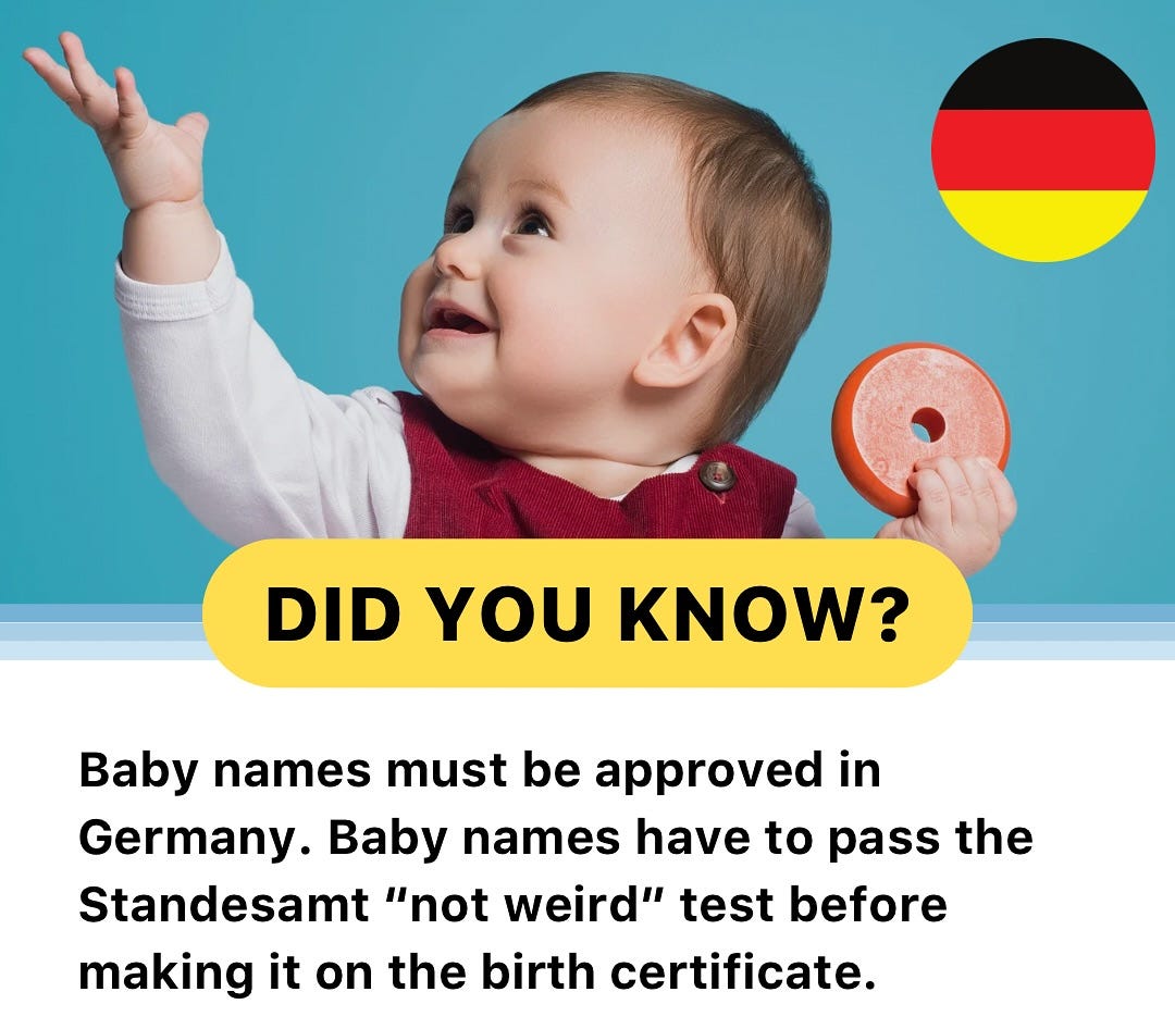 Naming ritual… Again in Germany and Norway too. Nothing like that in Switzerland… I think a bunch of names would be prohibited… LOL!