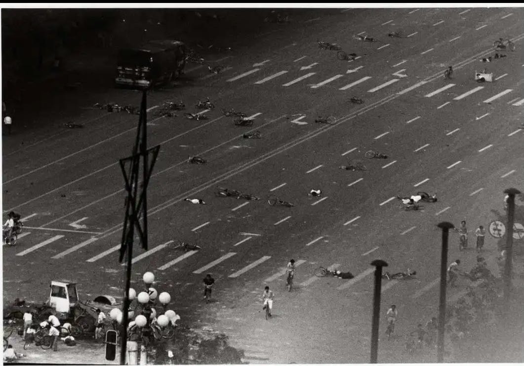 Photo of the aftermath of Tiananmen square massacre, today is its 35th anniversary..