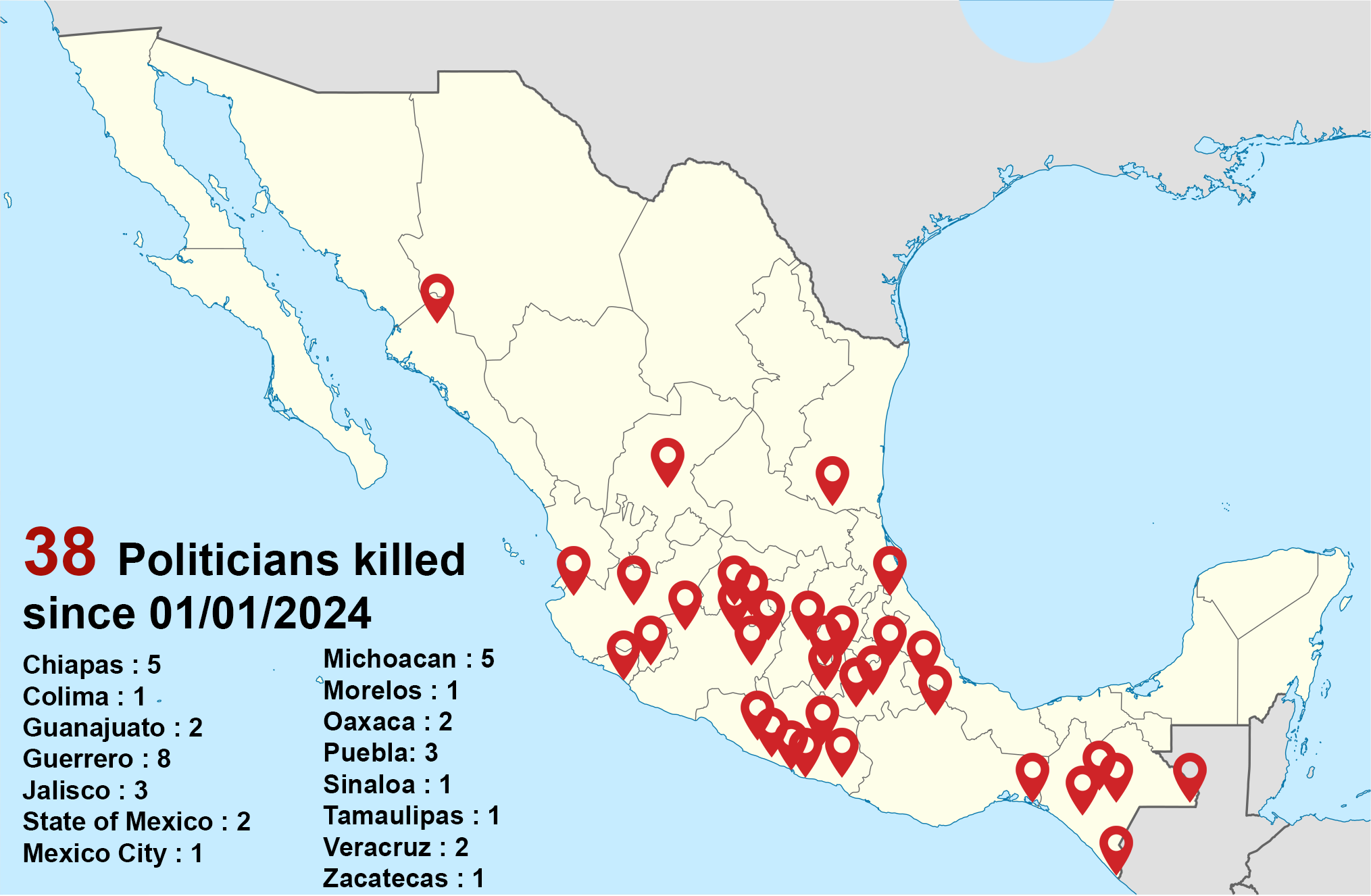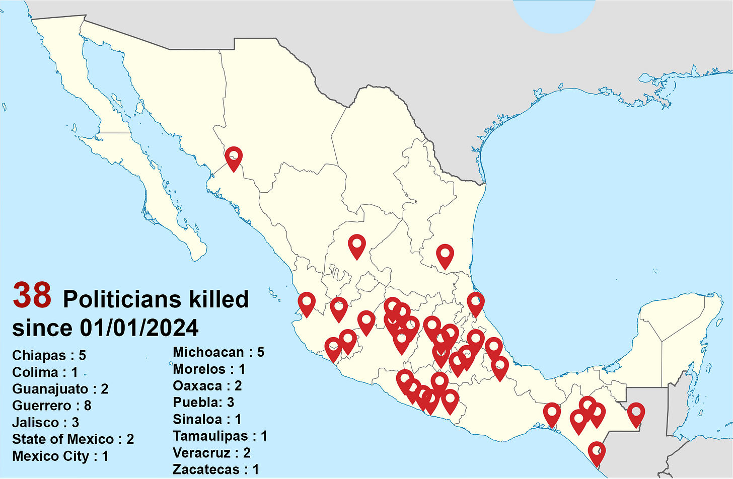 Politicians killed in Mexico since the start of 2024… It was one of the worst presidential run ever… 30 candidates dead. 11 candidates kidnapped 77 threatened…