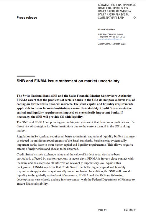 Shall we ultimately rename them “Debit Suisse” and switch to next steps? Too big to fail? Really? SNB to provide Credit Suisse with liquidity if needed…