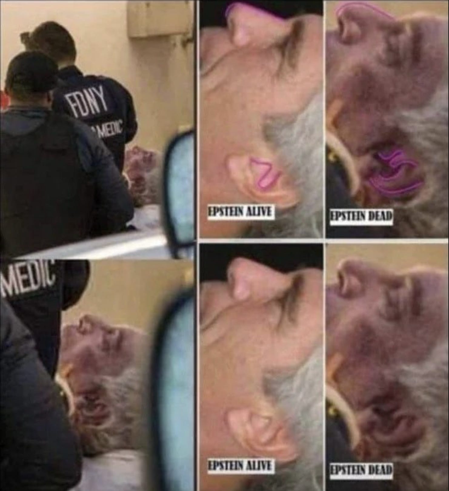 I still believe that what was wheeled out of the prison in NYC was a body double for Jeffrey. He is likely still alive somewhere, after extensive surgery and new ID papers.